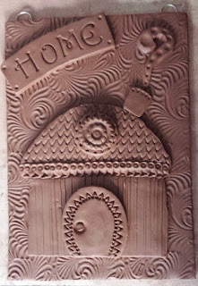 I haven't been able to use my kiln until this past weekend. This tile had a crack in it but was still intact so I decided to glaze it as a test...